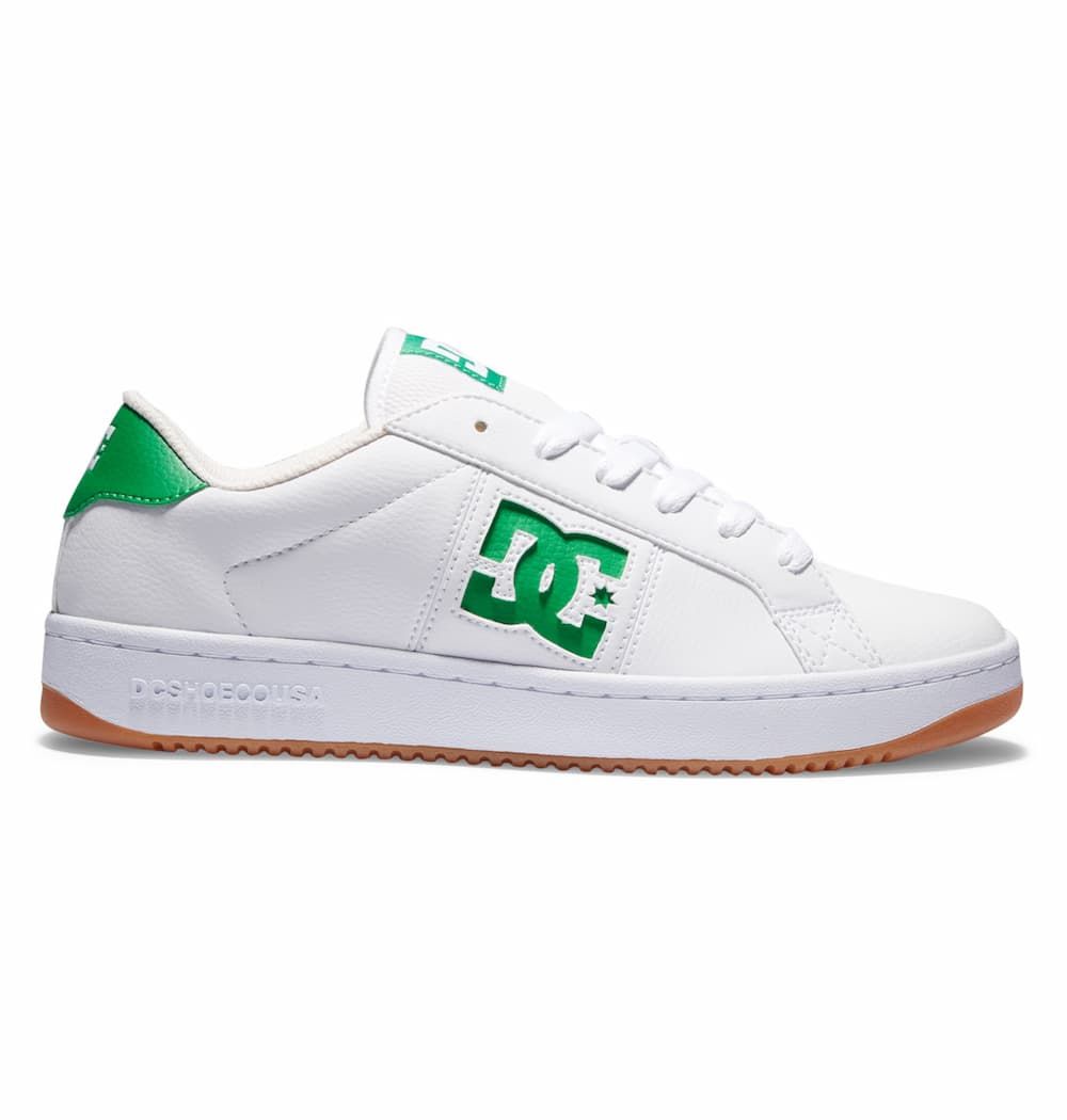 Las zapatillas para hombre Striker en blanco y verde (White-Green) de DC Shoes están fabricadas con cuero, loneta y goma.
