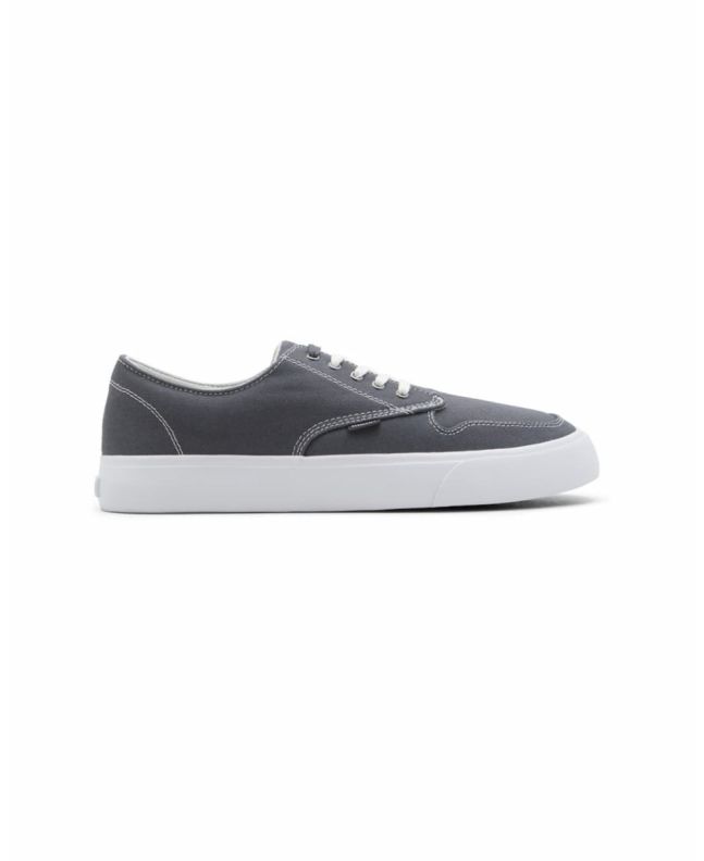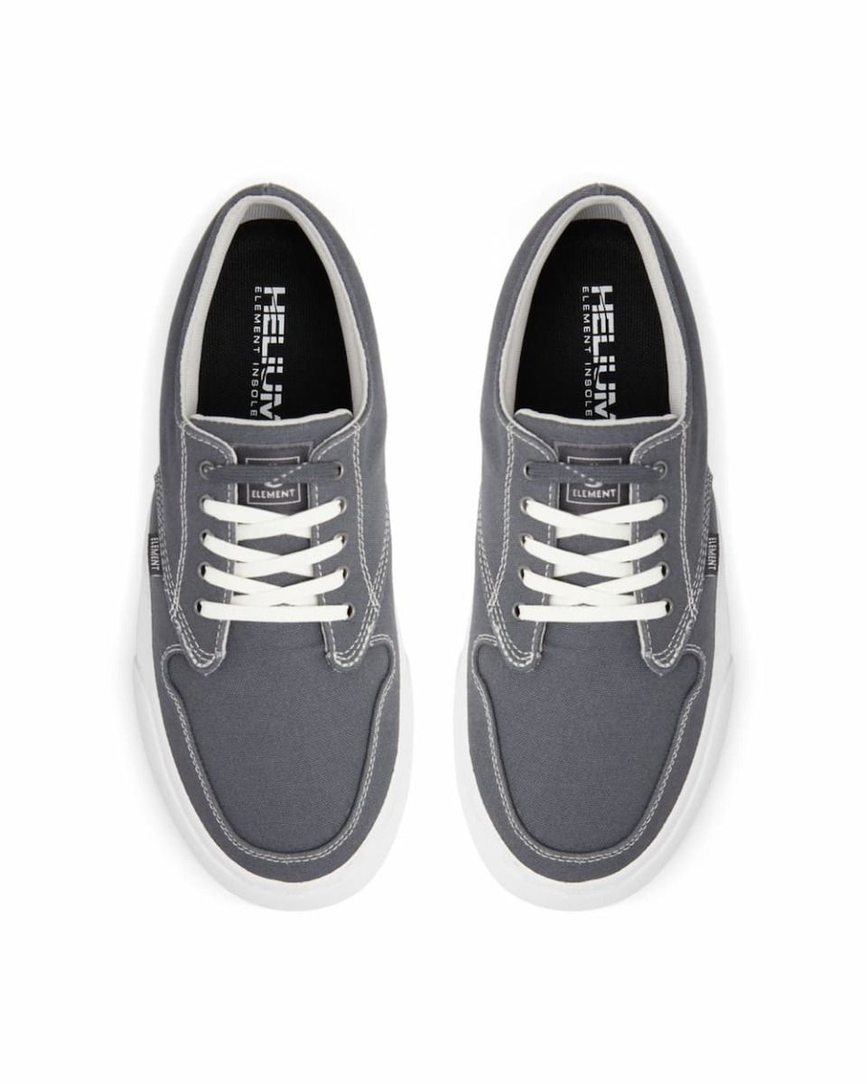 Las zapatillas para hombre Topaz C3 en gris con los laterales de la suela en blanco (Asphalt-White) de Element están confeccionadas con algodón orgánico, poliéster reciclado y goma parcialmente reciclada.