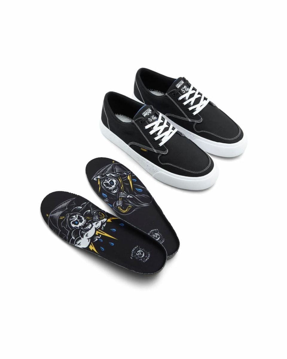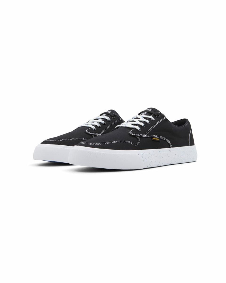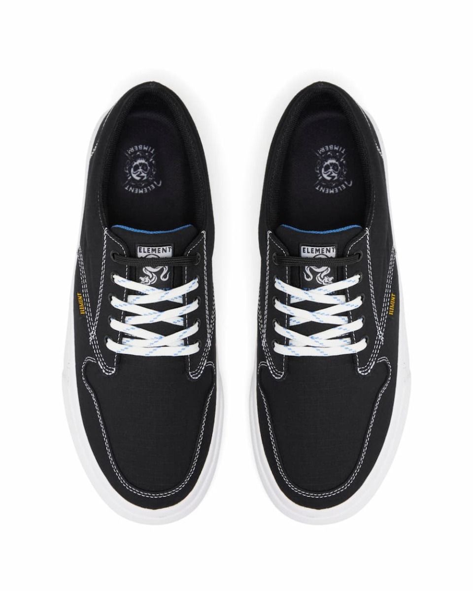 Las zapatillas para hombre Topaz C3 en negro con los laterales de la suela en blanco (Black Regatta) de Element están confeccionadas con algodón orgánico, poliéster reciclado y goma parcialmente reciclada.