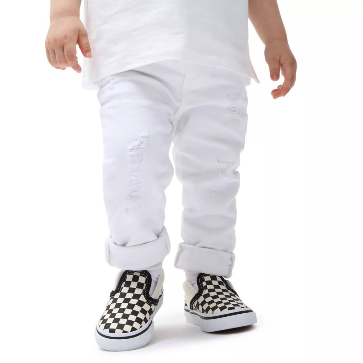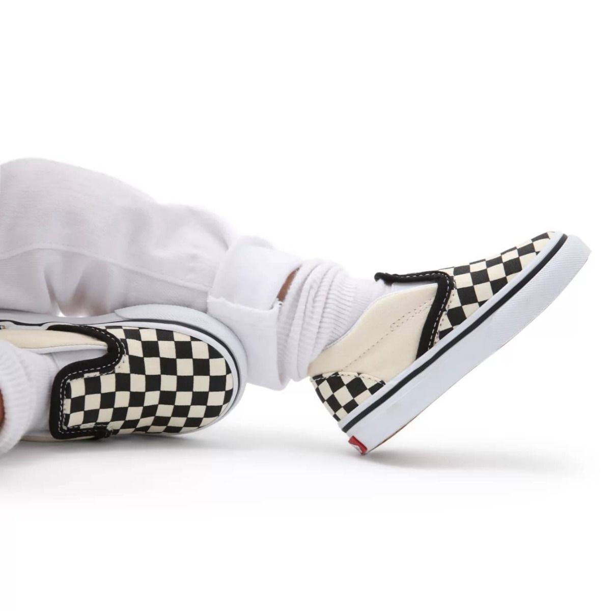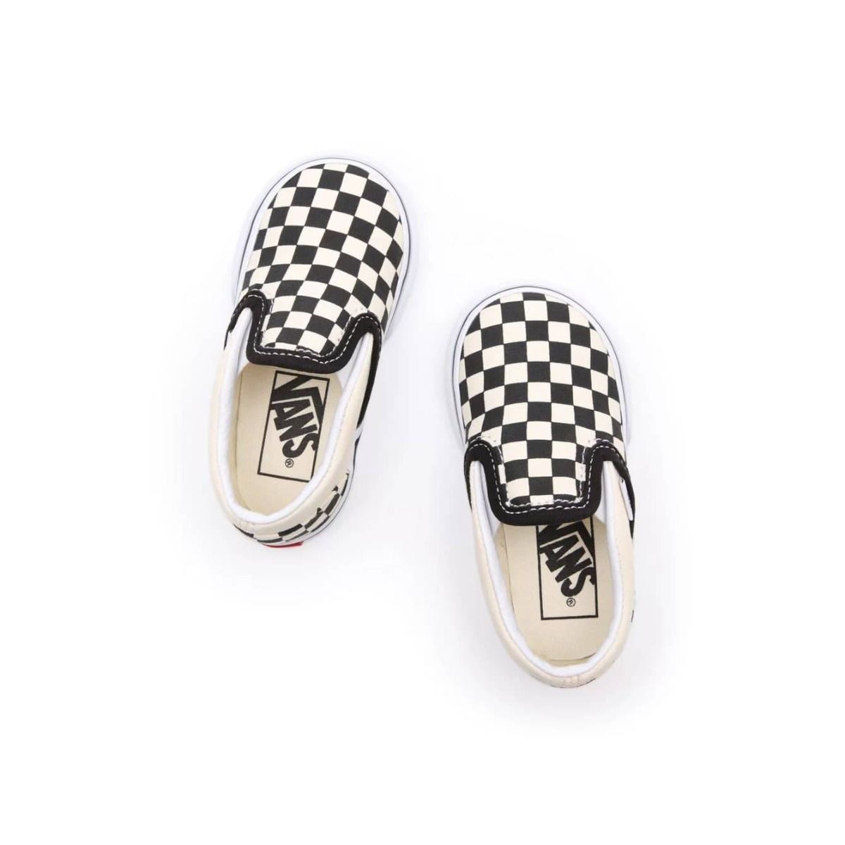 Las deportivas infantiles Vans Toddler Classic Slip-On Checkerboard con estampado damero en color negro y blanco (Blk&Whtchckerboard/Wht) son el calzado perfecto para los más pequeños. Diseñadas sin cordones, con paneles elásticos laterales y un cuello acolchado, garantizan un ajuste cómodo y seguro para bebés y niños/as de hasta 4 años.