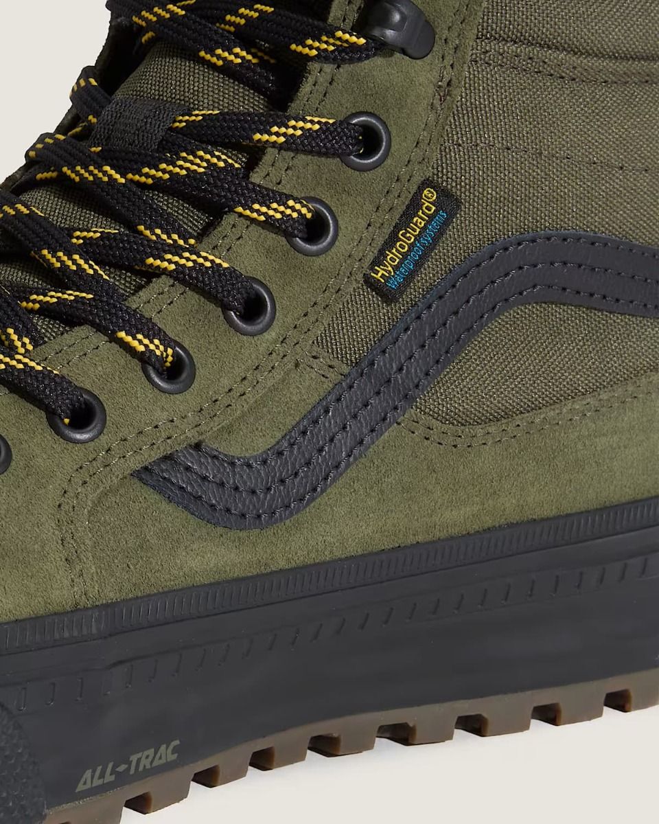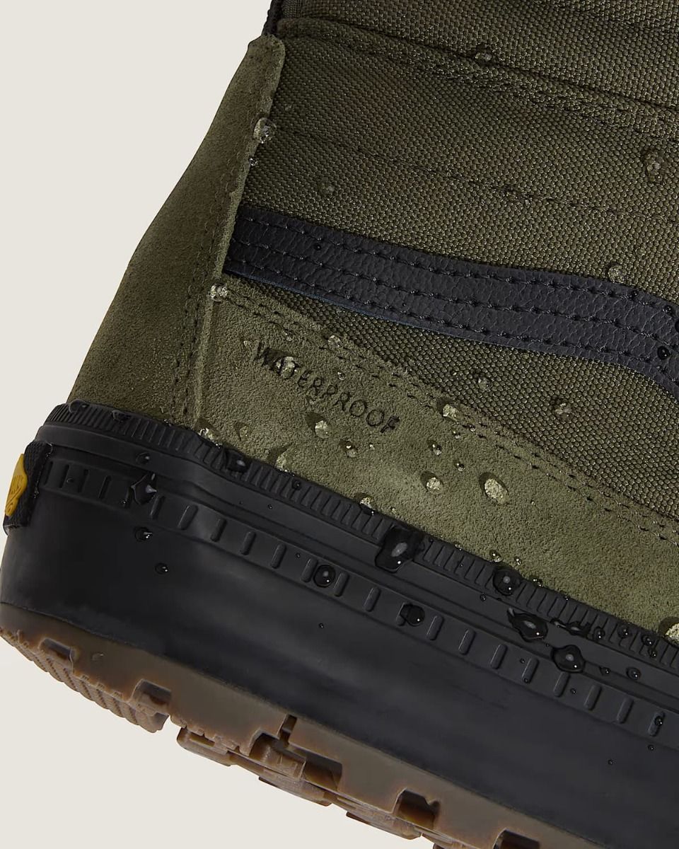 Zapatillas Vans MTE Sk8-Hi Waterproof Insulated verdes y negras. Impermeables, cálidas y resistentes con suela All-Trac para máxima tracción.