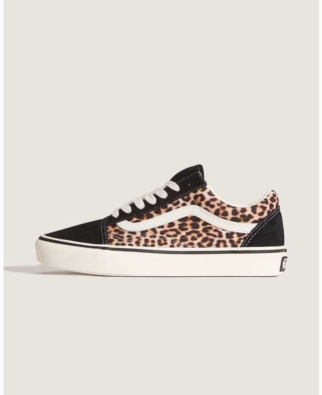 Las Old Skool mantienen una silueta clásica y reconocible al instante. En esta versión destacan la combinación de lona y ante junto con el estampado de leopardo, que aporta un toque gráfico distintivo al diseño.