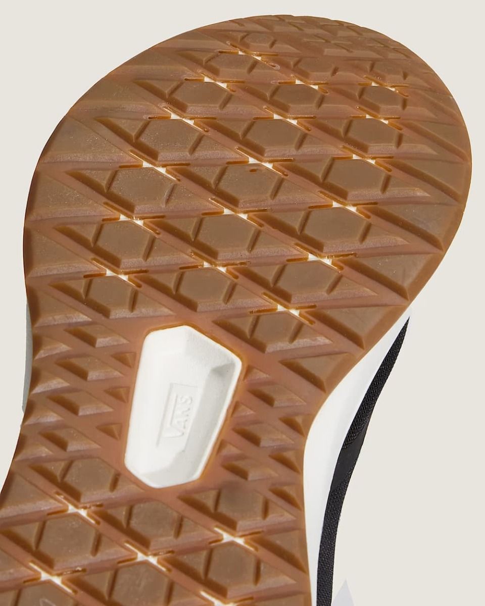 La suela incorpora el patrón waffle inverso dentado, una evolución del clásico diseño de Vans que mejora la tracción y la flexibilidad en diferentes superficies.