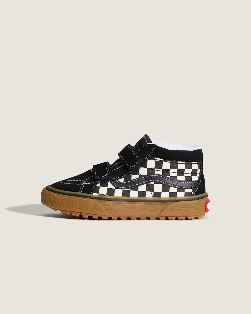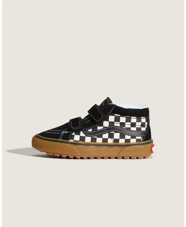 Zapatillas Vans UY MTE Sk8-Mid Reissue V checkerboard negro/blanco para niño/a (4-8 años). Impermeables, cómodas y con doble velcro. Inspiradas en las clásicas Sk8-Hi.