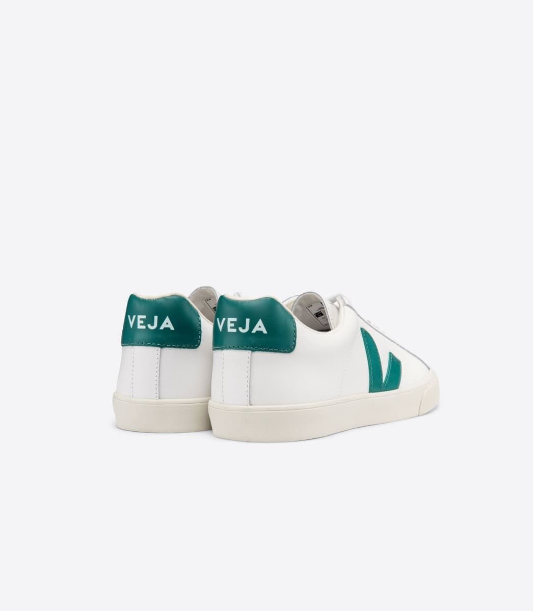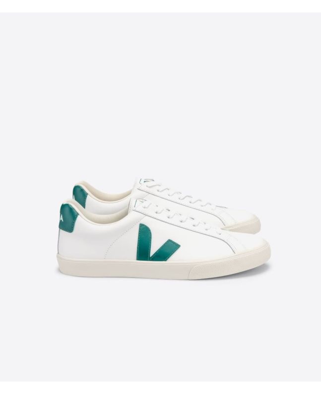 Zapatillas Veja Esplar Leather en color blanco con detalles en verde y suela de goma Unisex | Leather White Brittany
