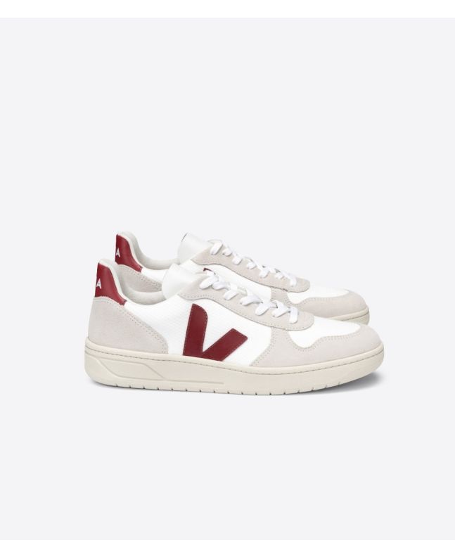 Zapatillas Ecológicas Veja V-10 B-Mesh Blancas con detalles en granate y suela de goma beige Unisex | White Natural Marsala