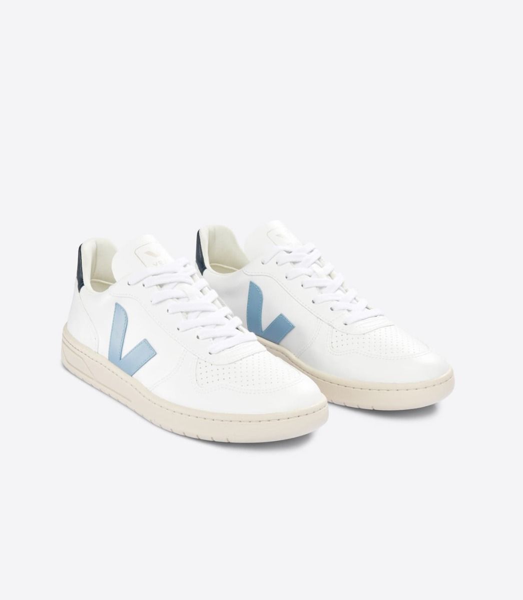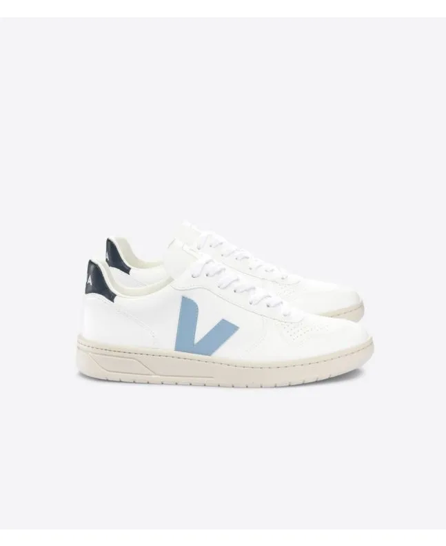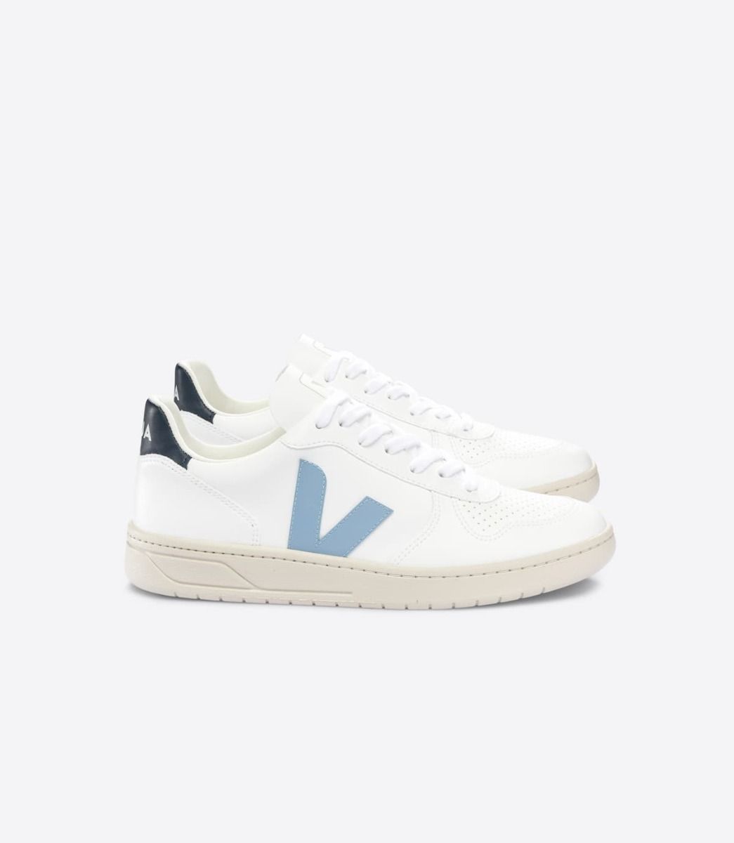 Zapatillas Veganas Veja V-10 CWL en color blanco con detalles en azul Unisex | White Steel Nautico