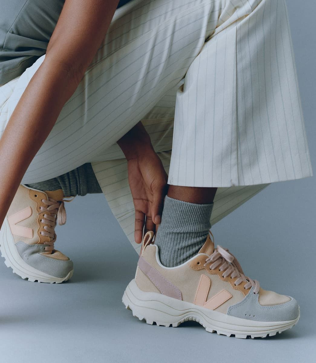 Las zapatillas para mujer Venturi VC Suede Almond Peach Multico de Veja combinan una estética elegante con una fabricación ética a partir de materiales de origen responsable y sostenible.