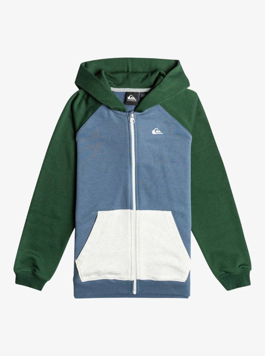 La sudadera con capucha y cremallera Easy Day Youth Verde y Azul para niño tiene el sello de garantía Quiksilver.