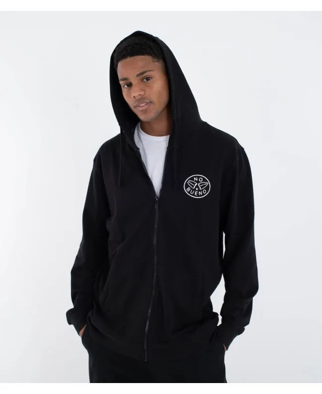 Sudadera reversible Hurley para hombre con capucha, cremallera y gráfico de tabla de surf rota con inscripción NO BUENO.