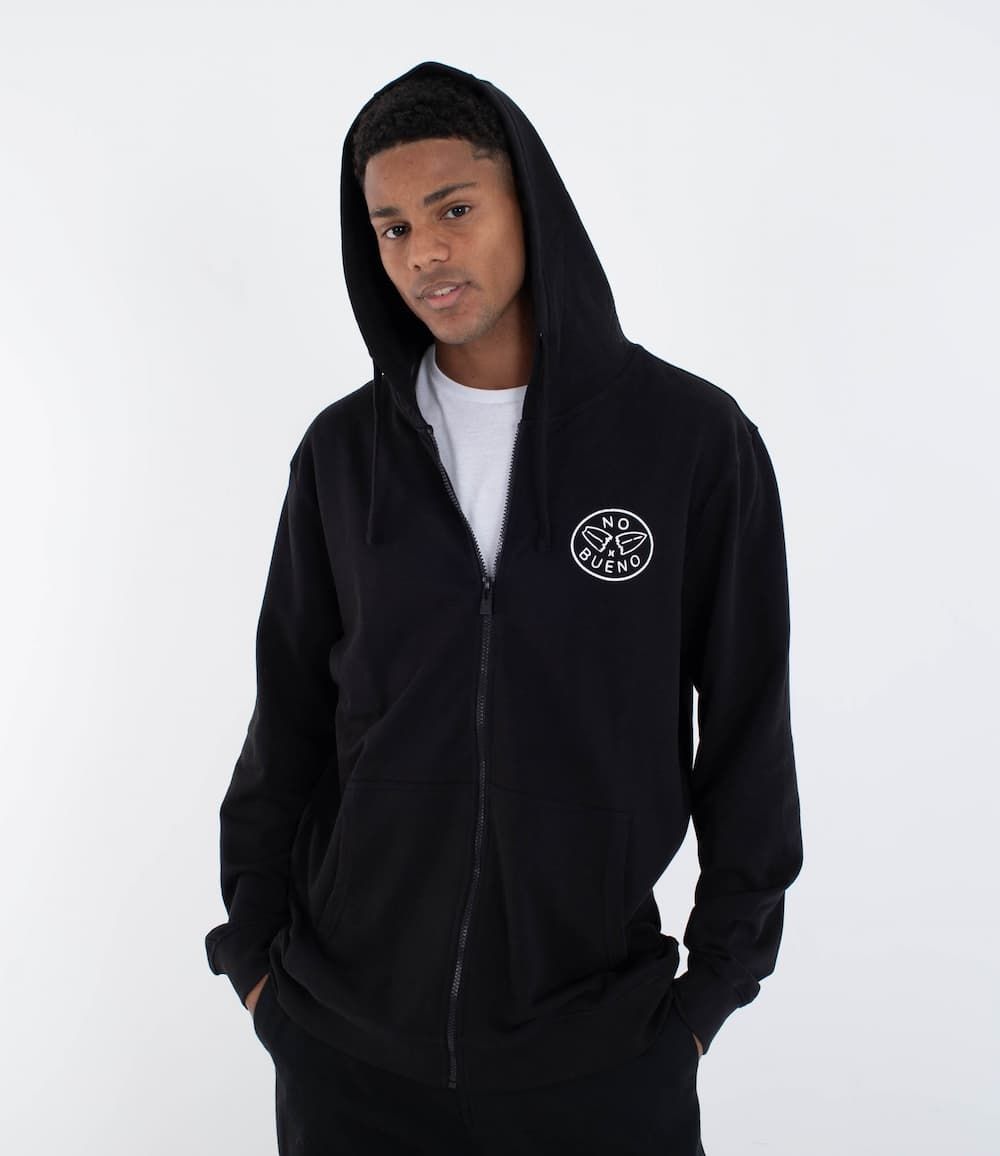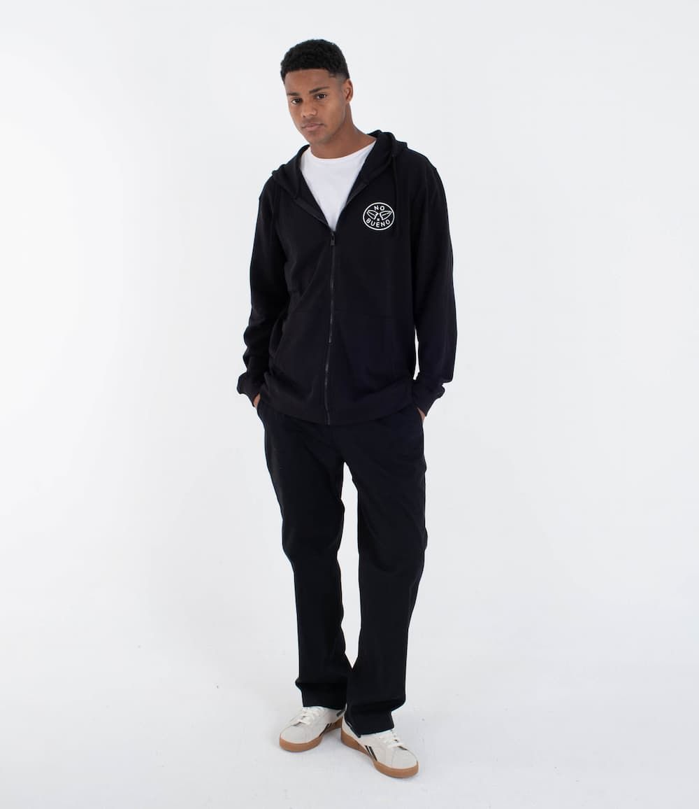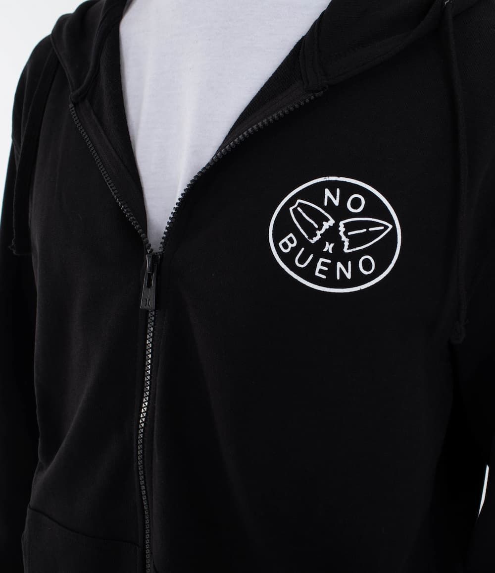 Gracias a su diseño reversible, esta sudadera tipo chaqueta ofrece dos looks en uno: un lado limpio y sobrio para el día a día, y otro con un estampado potente que grita rebeldía con el emblemático gráfico "NO BUENO" de una tabla de surf partida en dos tanto en el pecho como en la espalda. La capucha ajustable añade cobertura extra, ideal para cambios de tiempo, mientras que los puños y cintura elásticos aseguran un ajuste cómodo y definido.