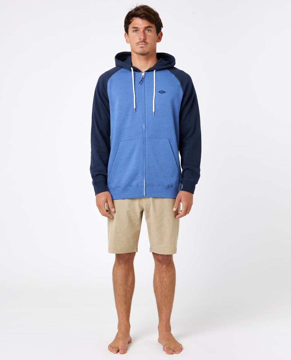 La sudadera con capucha y cremallera para hombre Embroid Hood en azul (Dark Blue Marle) de Rip Curl está confeccionada con tejido en mezcla de 80% algodón y 20% poliéster (260g/m2).
