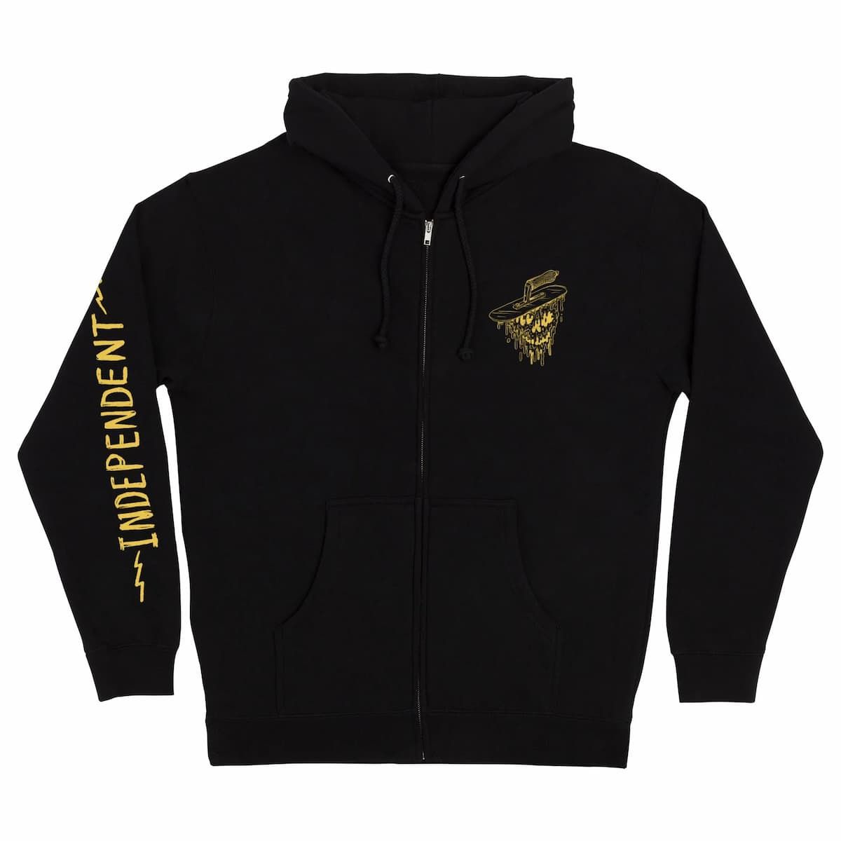 Sudadera Independent Bratrud Notebook negra con capucha y cremallera. Tejido grueso 10oz, corte regular y estampados gráficos de Todd Bratrud.