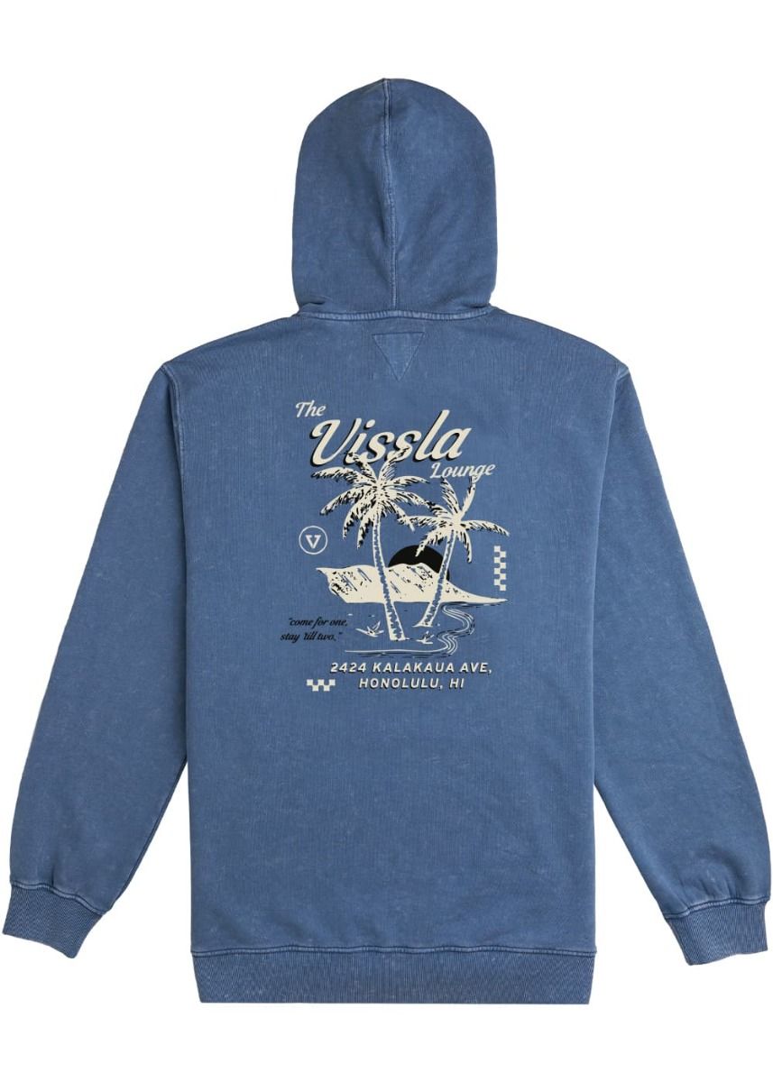 Este zip hoodie cuenta con capucha ajustable mediante cordón, tejido interior de forro polar, teñido en prenda para mayor suavidad y un aspecto desgastado, cierre frontal de cremallera, punto canalé en mangas y dobladillo inferior, un bolsillo delantero tipo canguro, la "V" de Vissla serigrafiada en el lado izquierdo del pecho y estampado surfero The Vissla Lounge impreso en la espalda.