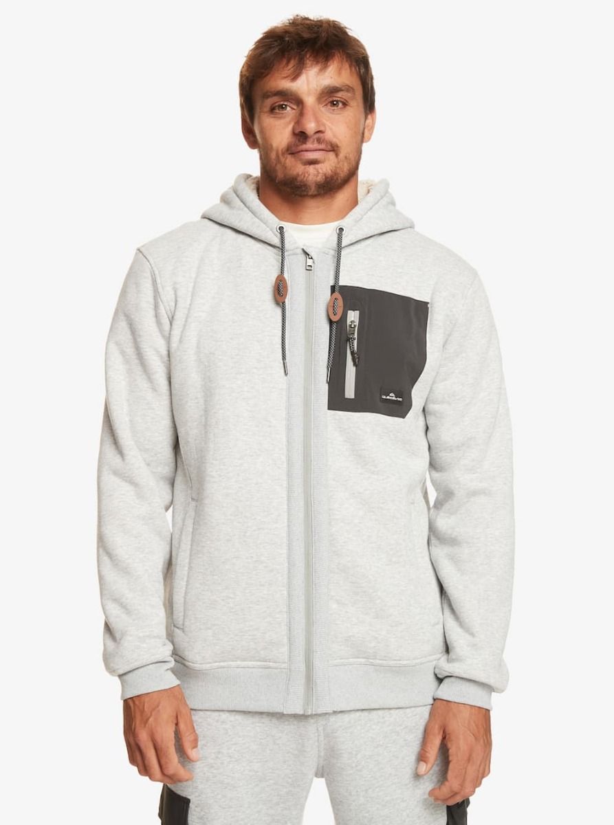 La sudadera con capucha y cremallera para hombre Out There Full Zip Hoodie en gris (Light Grey Heather) de Quiksilver está confeccionada con tejido en mezcla de 60% algodón y 40% poliéster (380g/m2).