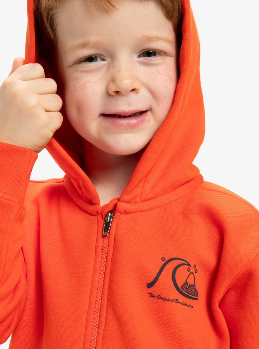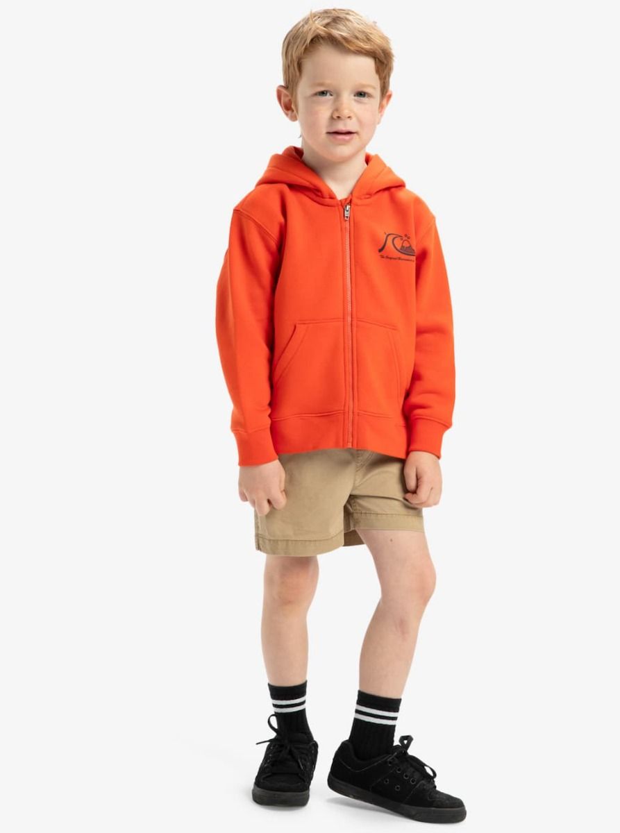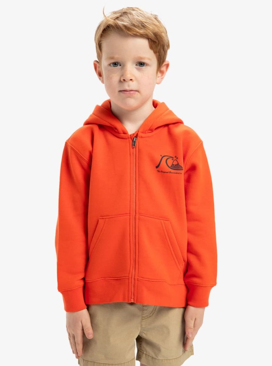 La sudadera con capucha y cremallera para niños de 2-7 años Quiksilver Boys Day Tripper Zip Hood en vibrante color naranja (Tigerlily) está pensada para acompañar a los más pequeños en todas sus aventuras. Su tejido polar cepillado proporciona una calidez acogedora, perfecta para los días frescos junto al mar o para cualquier momento del día a día.