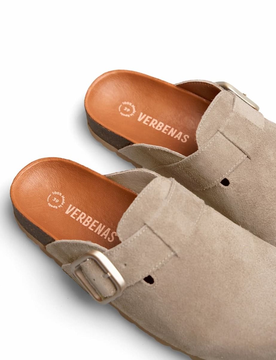 Zuecos Verbenas de serraje cómodos y versátiles para verano y uso diario.